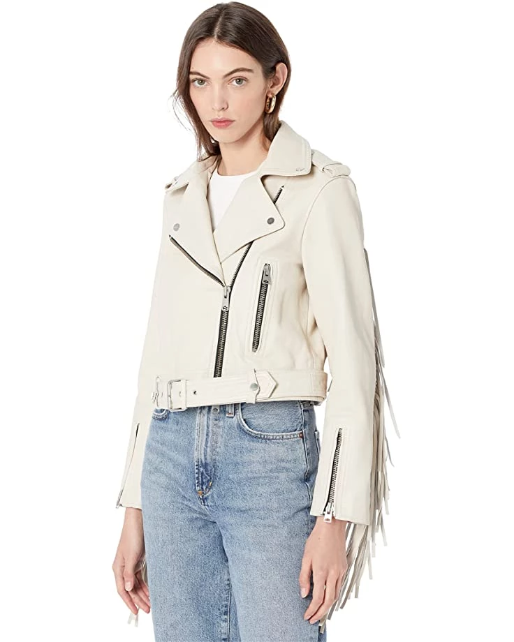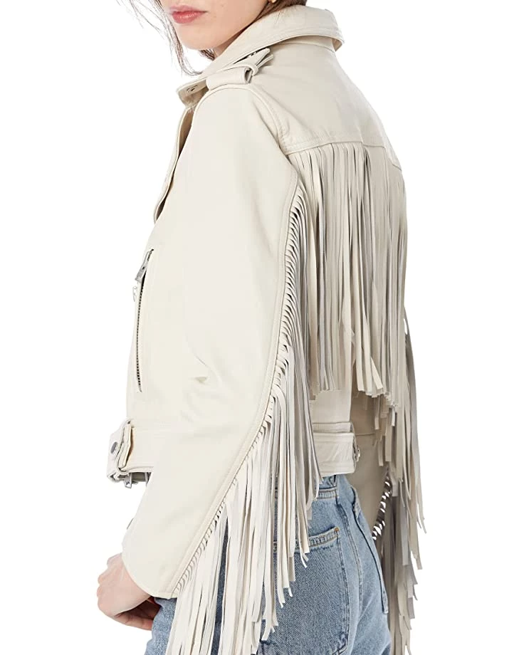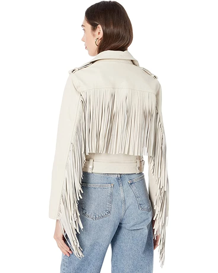 - Say hello to the Arya Tassel Jacket. Crafted from leather with a clean finish. Shaped to a boxy silhouette, it’s finished with an asymmetrical zip closure, shiny metal hardware, and the classic fringe at sleeves and back.