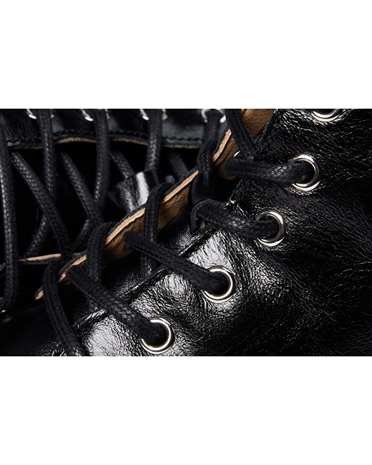 - Glossy leather upper.