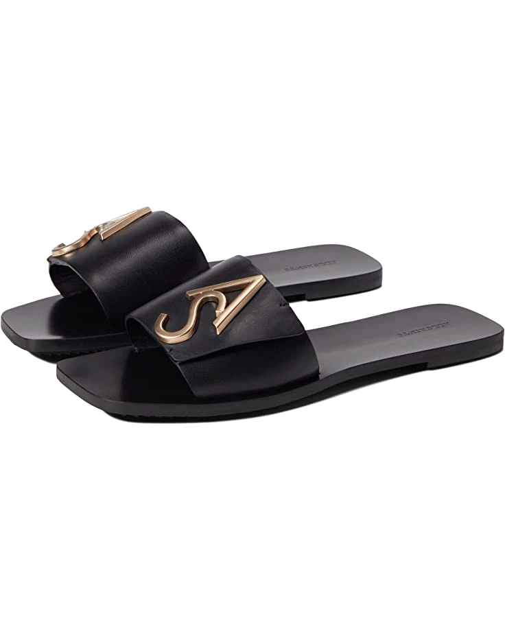 - Flat sandals featuring leather upper with metallic hardware detailing.
