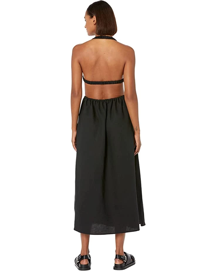 - Long in length with a halter neck and elasticated detailing for a flexible fit.