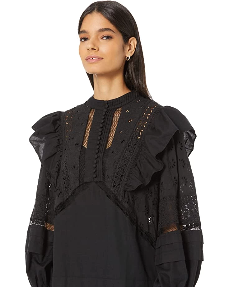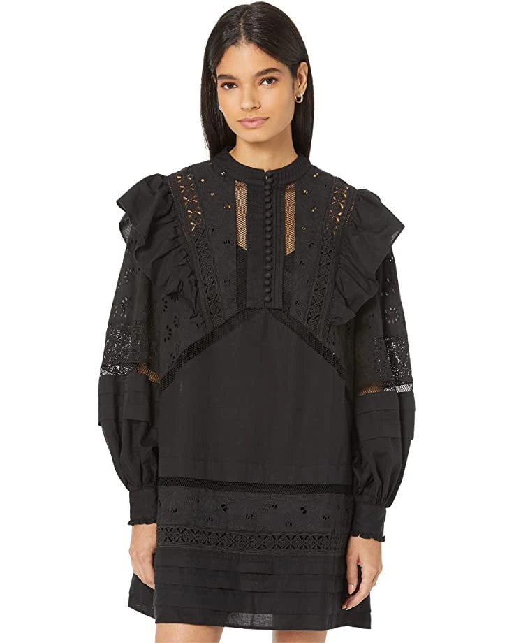 - AllSaints™ Prim Broderie Dress is a delicately designed dress with lacy insets and frilly outlines.