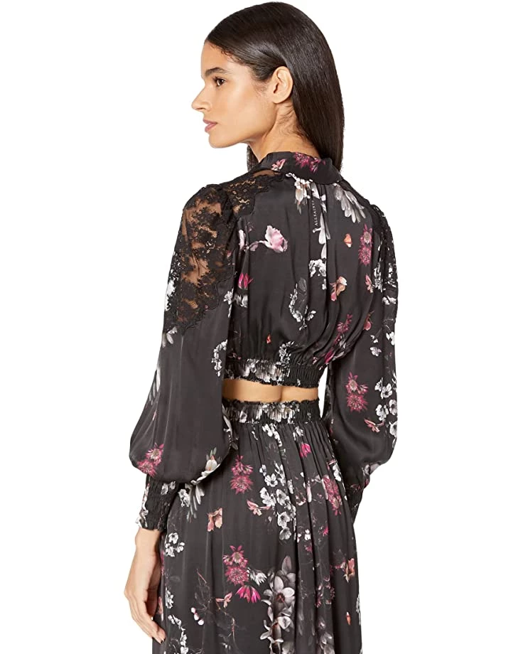 - Make an appearance in the designed AllSaintsβ’ Saz Silvius Top with a cropped silhouette that wraps over and is elasticated at the waist.