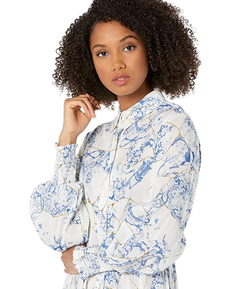- Long sleeves with smocked cuffs.