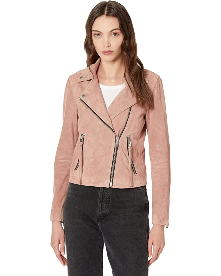 - Sport your adventurous personality in this cool and classy AllSaintsβ’ Suede Dalby Biker Chrome-free Jacket.